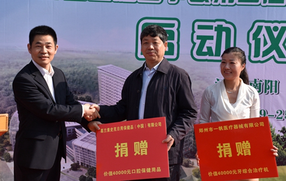 (上图:葛兰素史克公司、郑州一帆医疗器械公司捐赠二次“口腔中原行”)