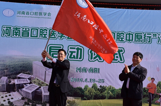 4月19日上午,春和景明,阳光普照。河南省口腔医学会第二届“口腔中原行”南阳站大型公益活动启动仪式在南阳市口腔医院隆重举行。当河南省口腔医学会曹选平会长把“河南口腔中原行”旗帜授给南阳市口腔医院刘中寅院长时,本届“口腔中原行”大型公益活动正式启动。